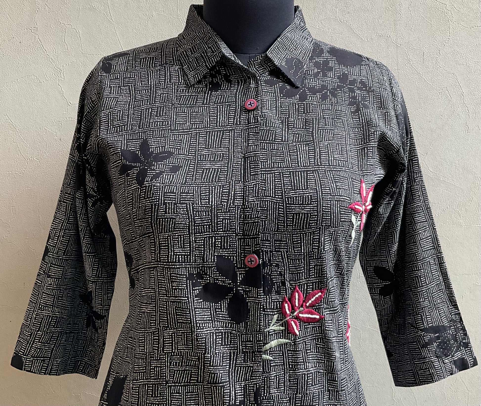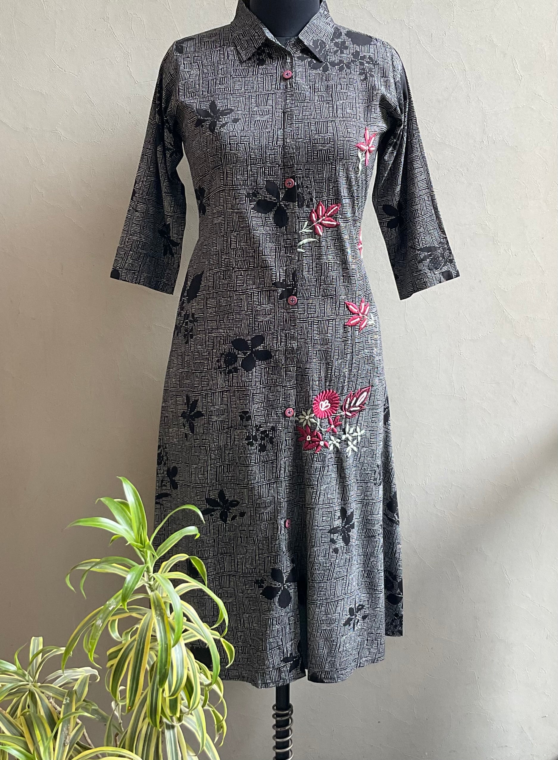 BLACK THREAD EMBROIDERED ALINE DRESS