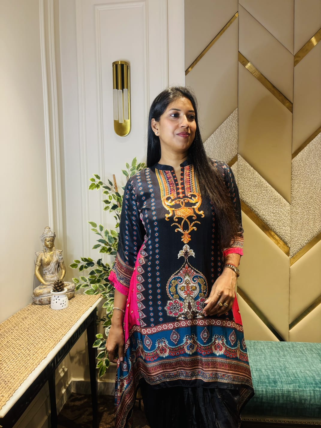 BLACK DIGITAL PRINTED TALE CUT CO-ORD SET