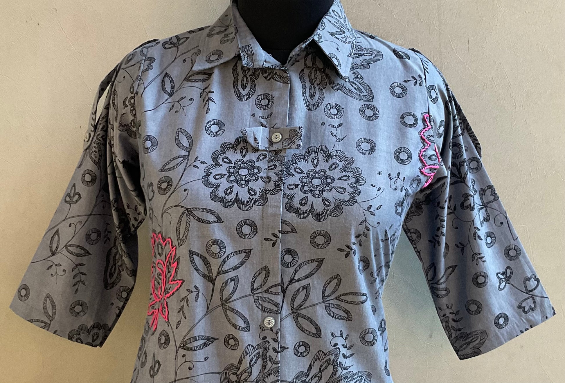 GREY DENIM KATHA EMBROIDERED ALINE DRESS