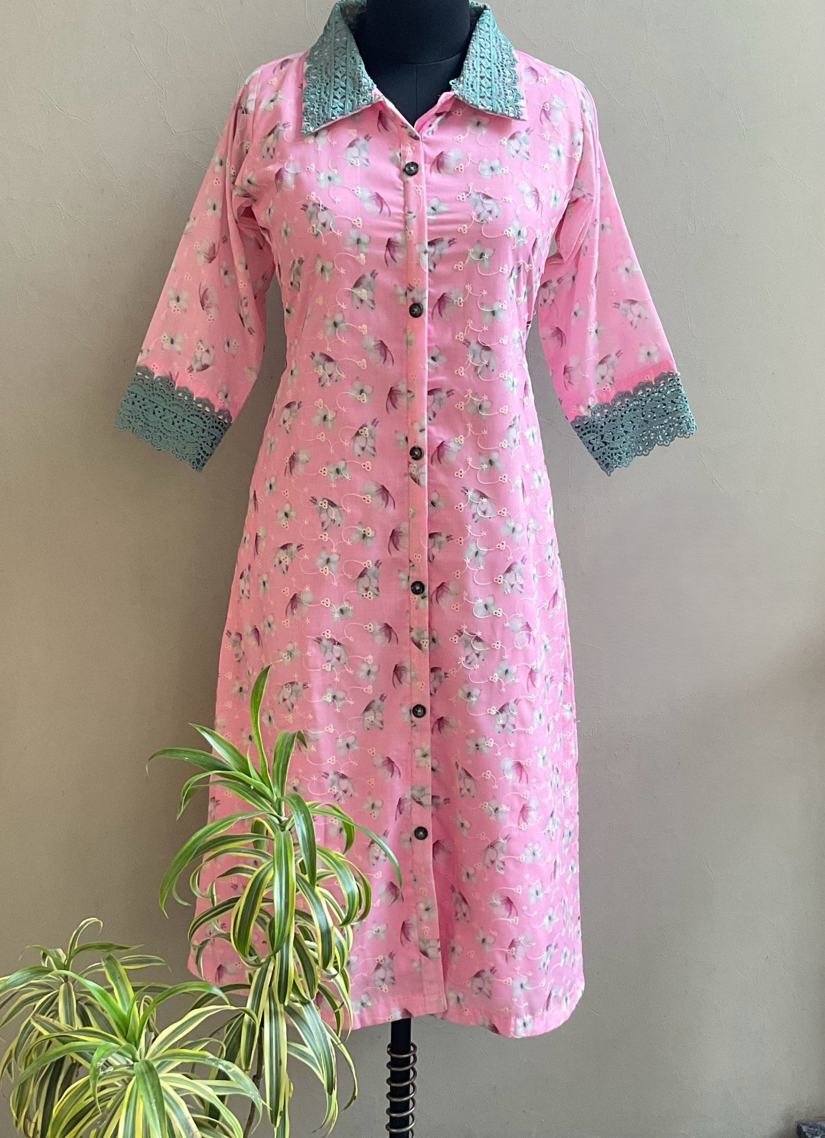 - Crosia lace highlighted on sleeves and collar