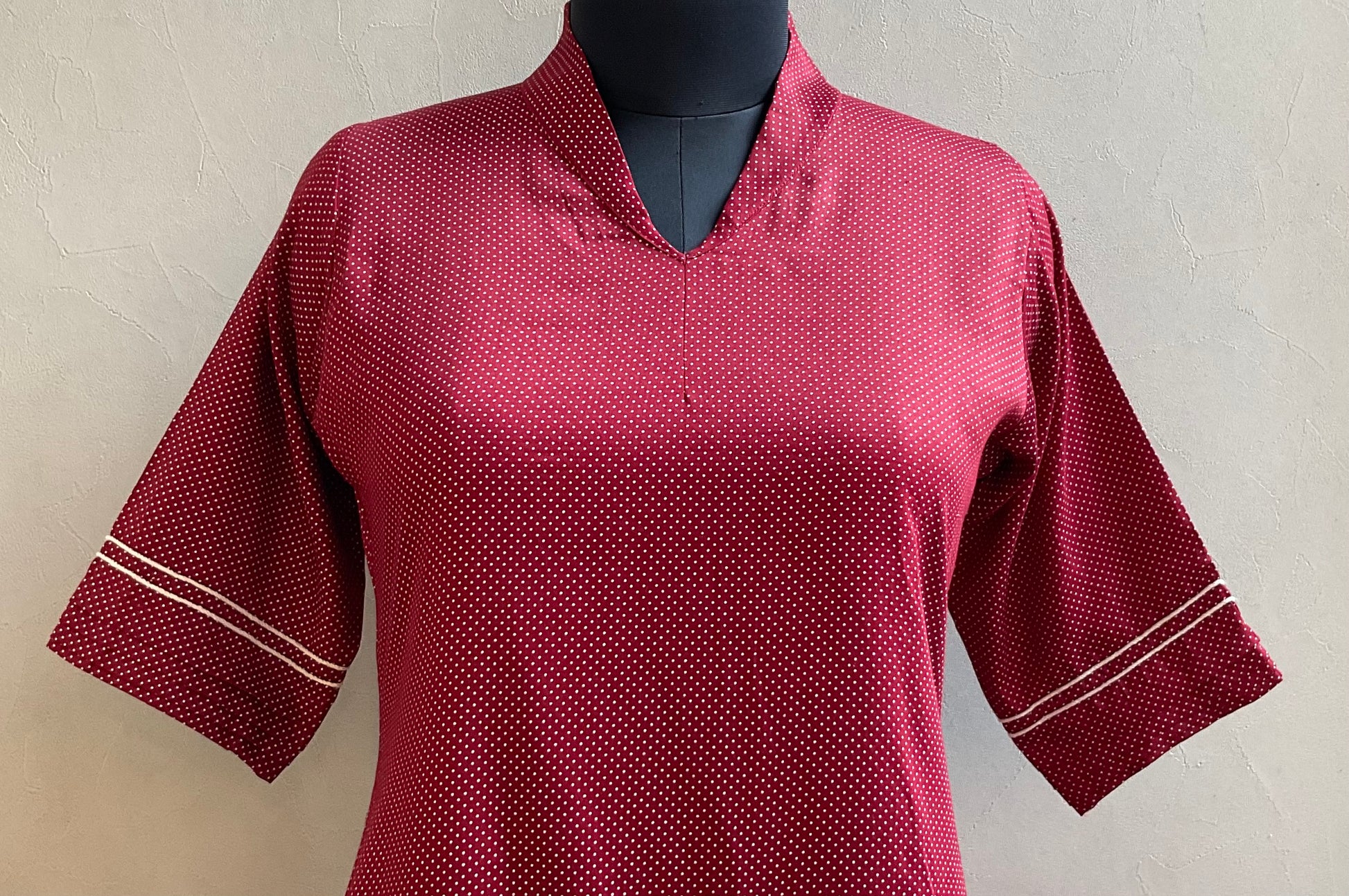 MAROON POLKA DOTS DORI WORK ALINE DRESS