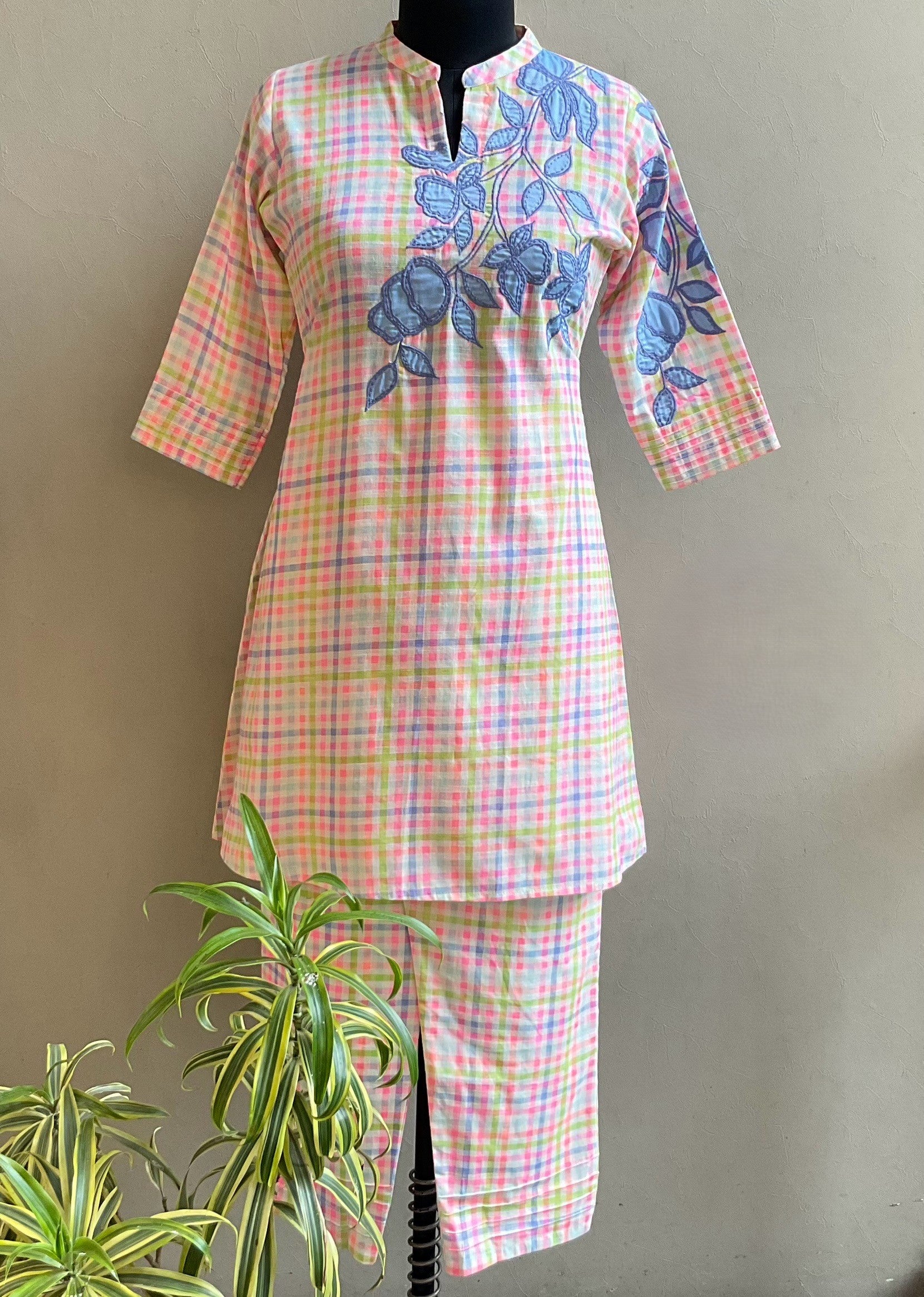 MULTI COLOR CHECKS ONE SIDE APPLIQUE CO-ORD SET